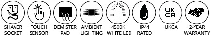 Bottom-centre of the mirror surface is a touch sensor to operate your mirrors light and functions, and on the bottom edge is an independently operated 240v socket for the charging of your electric toothbrushes and shavers. So if you’re looking for an illuminated bathroom mirror with shaver socket, this stunning model really does make for a great choice.
