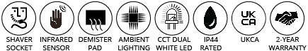 These mirrors are equipped with practical features, including an integrated shaver socket for charging electric shavers or toothbrushes, a heated demister pad to maintain a clear surface, and an infrared sensor for convenient on/off operation (and simultaneously, helping reduce the likelihood off sticky finger marks being present on your mirror front!).