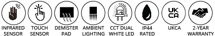 With an IP44 rating for Zones 2 & 3 and CE & RoHS certification, this mirror prioritizes safety and quality. Enjoy peace of mind with a 2-year warranty. Transform your bathroom into a haven of elegance. Upgrade to our Advanced Bathroom Mirror today for a perfect blend of style and functionality.